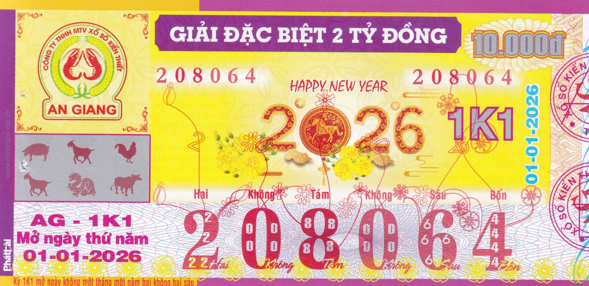 Mẫu vé kiểm tra khi đổi số trúng An Giang Ngày: 01/01/2026