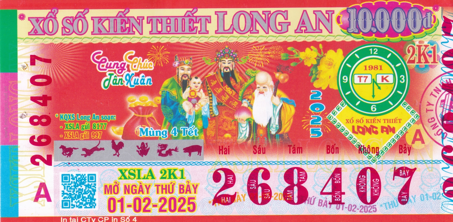 Mẫu vé kiểm tra khi đổi số trúng Long An Ngày: 01/02/2025