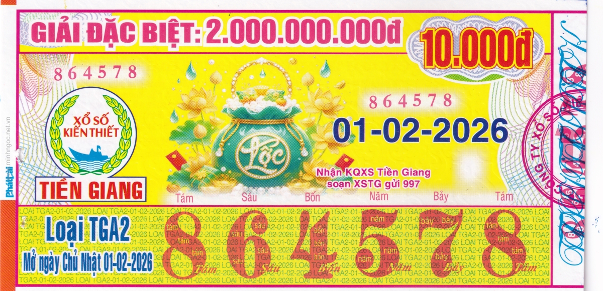 Mẫu vé kiểm tra khi đổi số trúng Tiền Giang Ngày: 01/02/2026