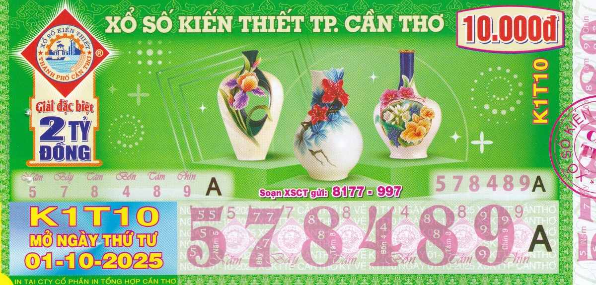 Mẫu vé kiểm tra khi đổi số trúng Cần Thơ Ngày: 01/10/2025