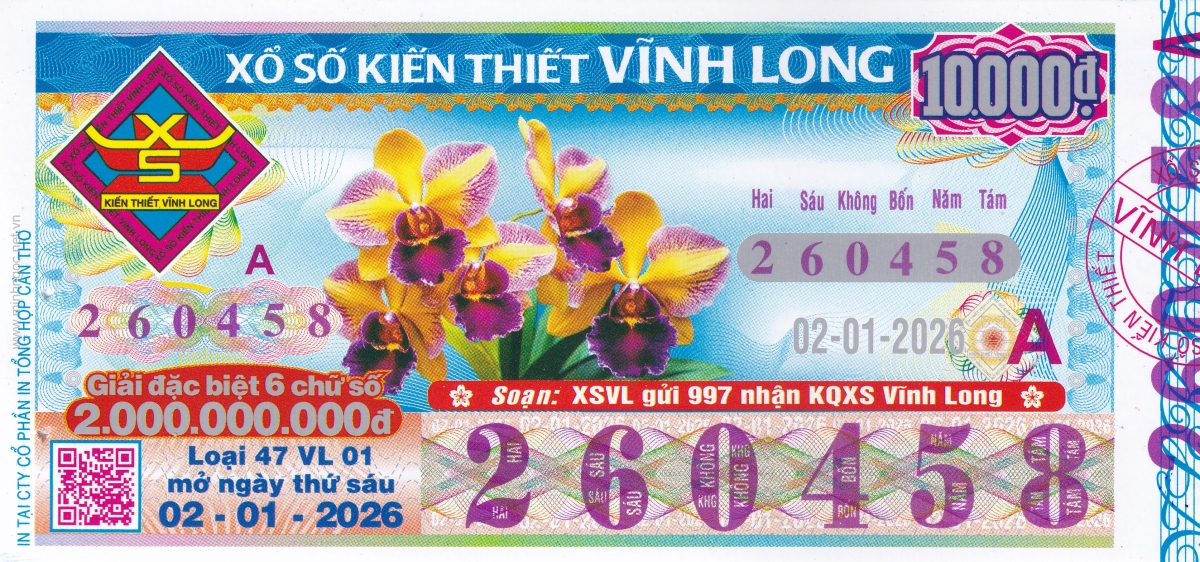Mẫu vé kiểm tra khi đổi số trúng Vĩnh Long Ngày: 02/01/2026