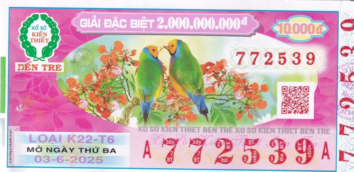 Mẫu vé kiểm tra khi đổi số trúng Bến Tre Ngày: 03/06/2025