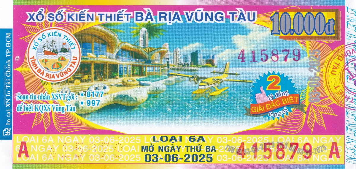 Mẫu vé kiểm tra khi đổi số trúng Vũng Tàu Ngày: 03/06/2025