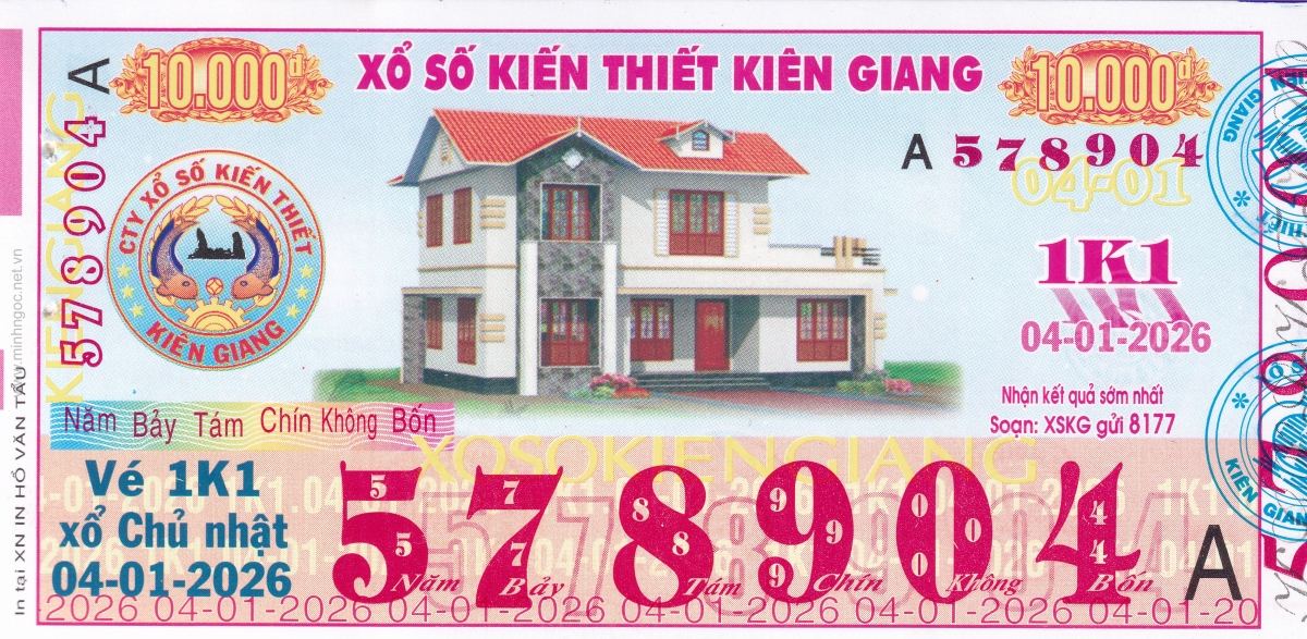 Mẫu vé kiểm tra khi đổi số trúng Kiên Giang Ngày: 04/01/2026