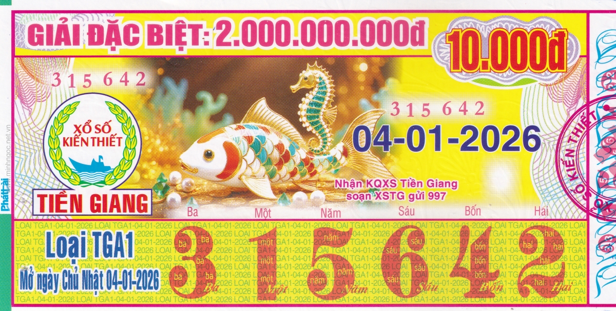 Mẫu vé kiểm tra khi đổi số trúng Tiền Giang Ngày: 04/01/2026