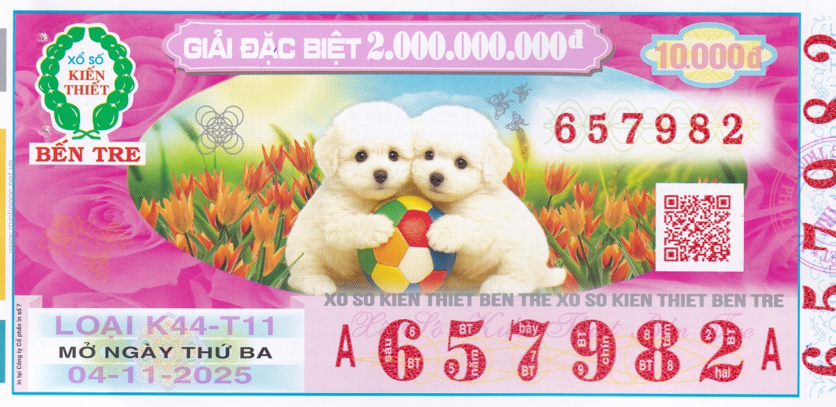 Mẫu vé kiểm tra khi đổi số trúng Bến Tre Ngày: 04/11/2025