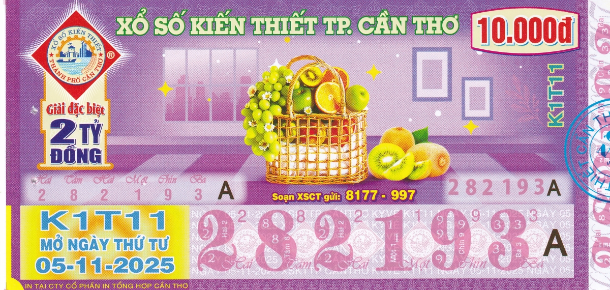 Mẫu vé kiểm tra khi đổi số trúng Cần Thơ Ngày: 05/11/2025