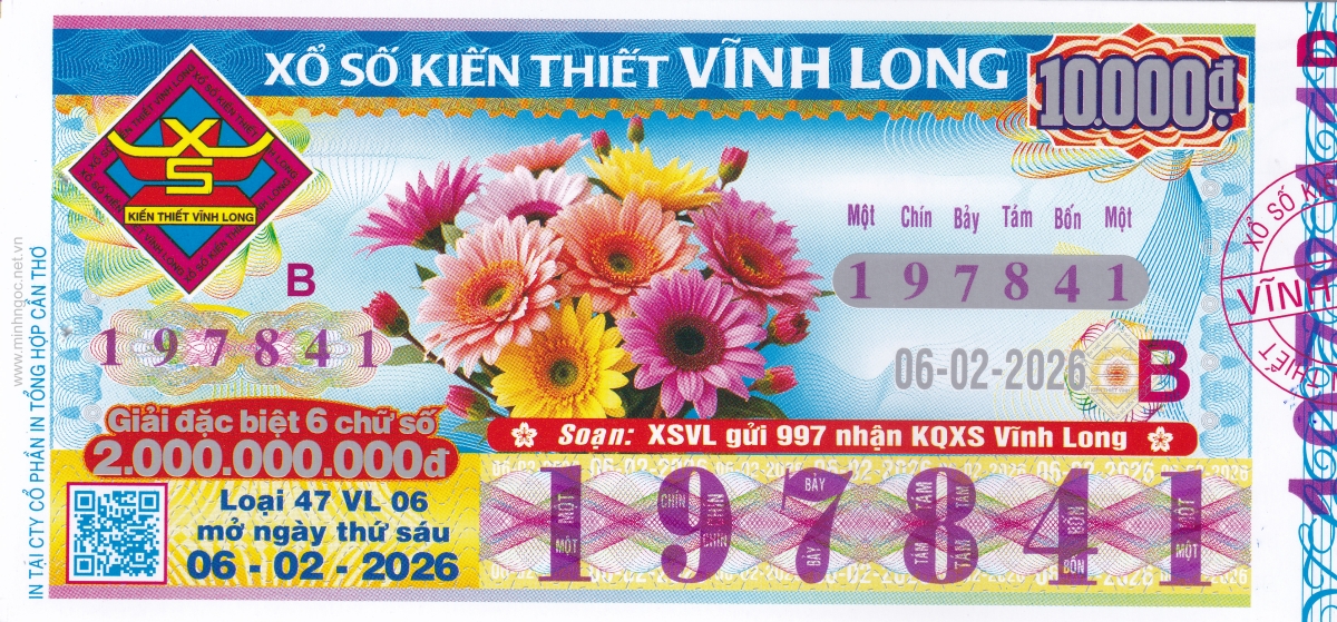 Mẫu vé kiểm tra khi đổi số trúng Vĩnh Long Ngày: 06/02/2026