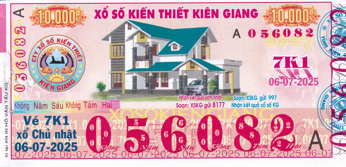 Mẫu vé kiểm tra khi đổi số trúng Kiên Giang Ngày: 06/07/2025