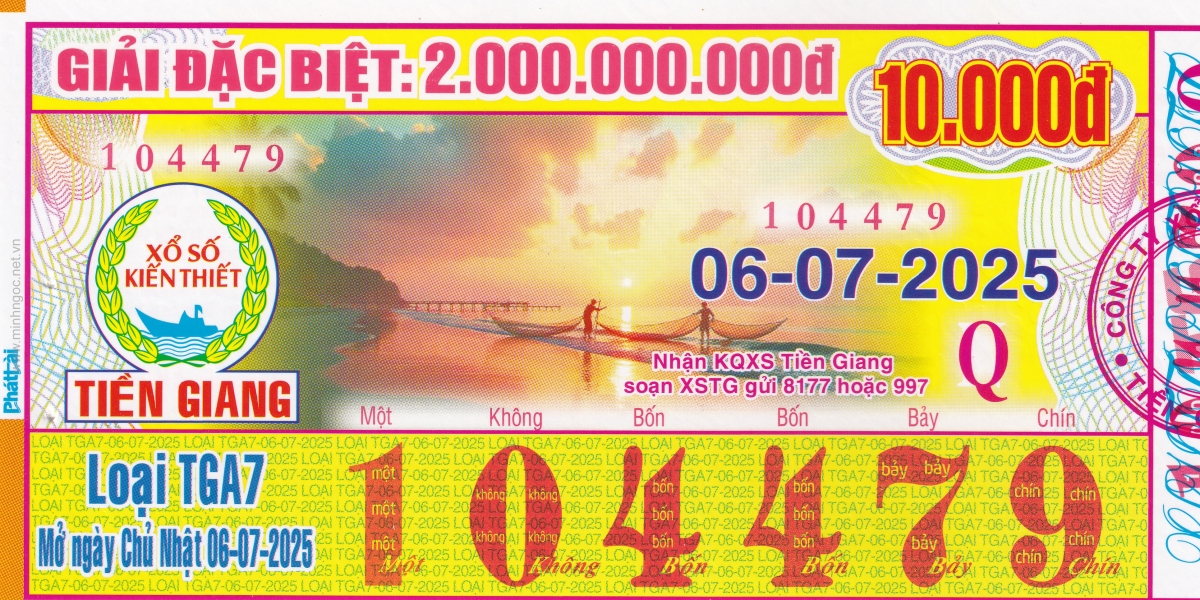 Mẫu vé kiểm tra khi đổi số trúng Tiền Giang Ngày: 06/07/2025