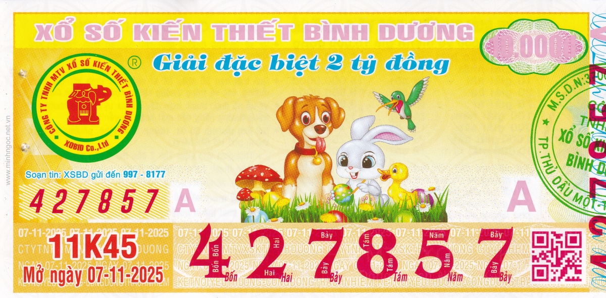 Mẫu vé kiểm tra khi đổi số trúng Bình Dương Ngày: 07/11/2025