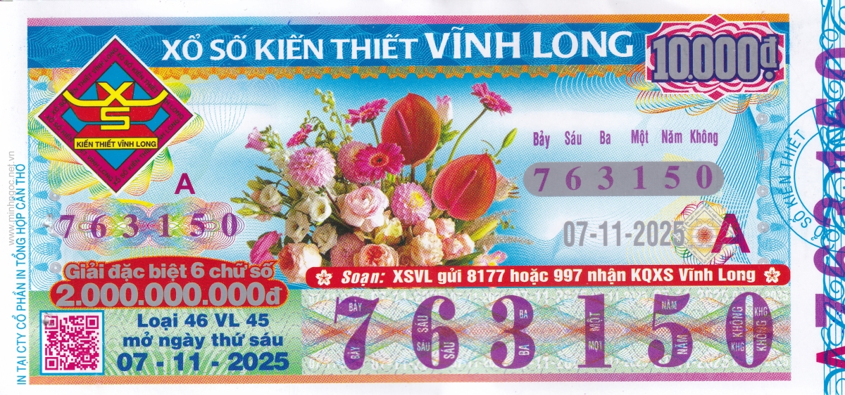 Mẫu vé kiểm tra khi đổi số trúng Vĩnh Long Ngày: 07/11/2025