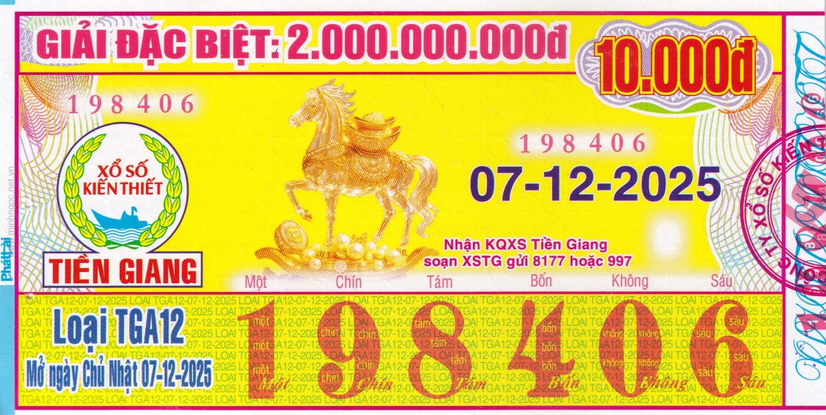 Mẫu vé kiểm tra khi đổi số trúng Tiền Giang Ngày: 07/12/2025