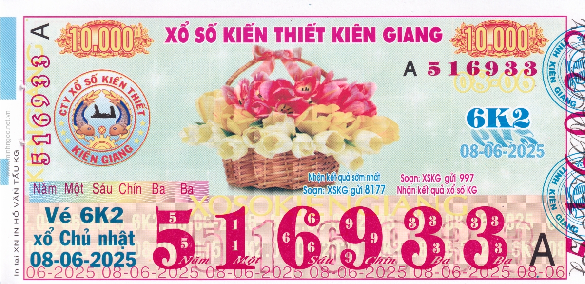 Mẫu vé kiểm tra khi đổi số trúng Kiên Giang Ngày: 08/06/2025