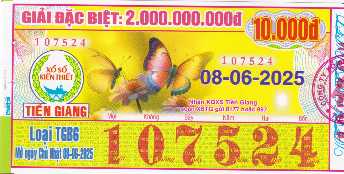 Mẫu vé kiểm tra khi đổi số trúng Tiền Giang Ngày: 08/06/2025
