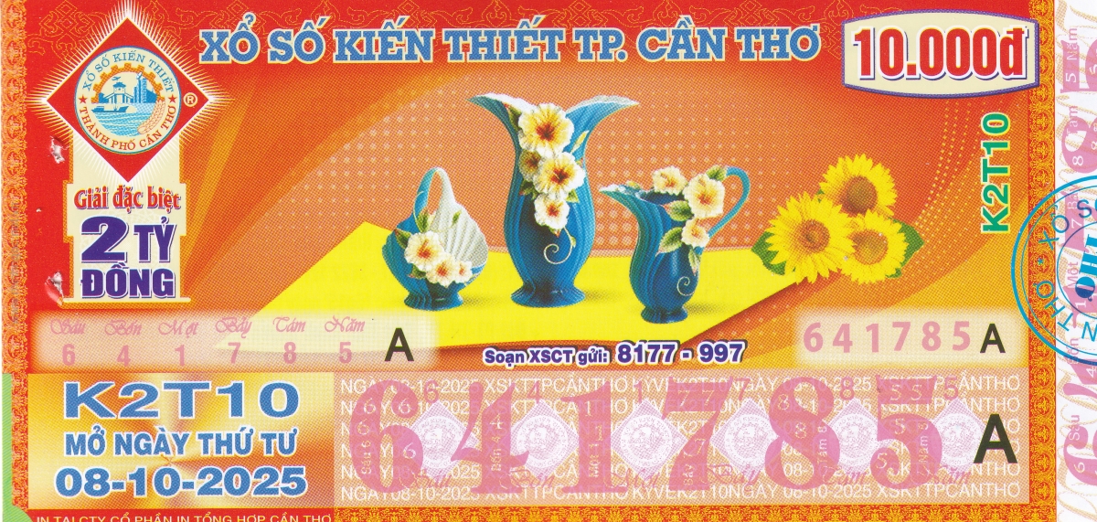 Mẫu vé kiểm tra khi đổi số trúng Cần Thơ Ngày: 08/10/2025