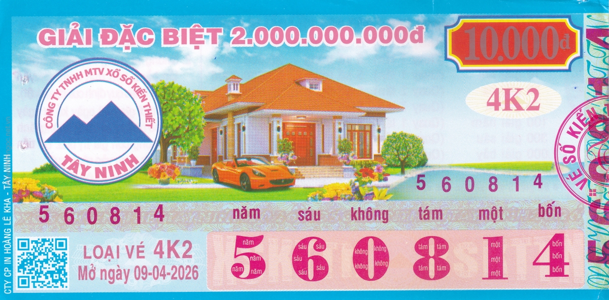 Mẫu vé kiểm tra khi đổi số trúng Tây Ninh Ngày: 09/04/2026