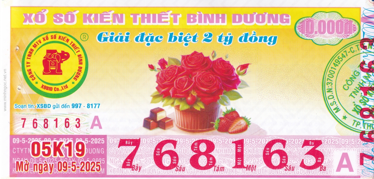 Mẫu vé kiểm tra khi đổi số trúng Bình Dương Ngày: 09/05/2025