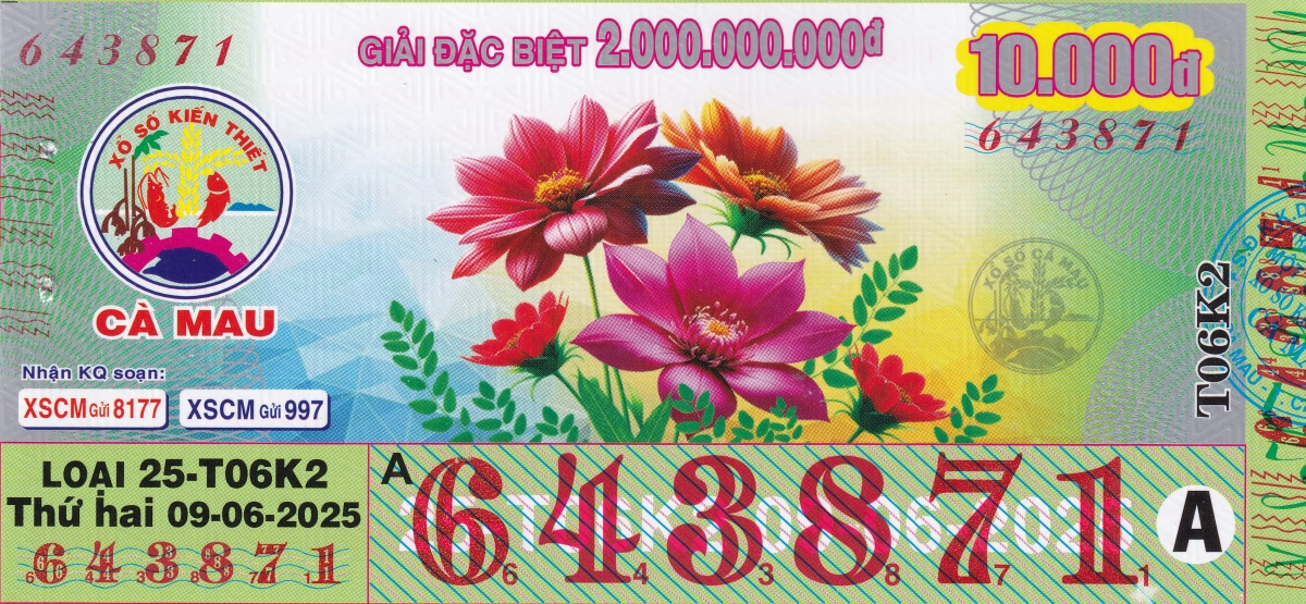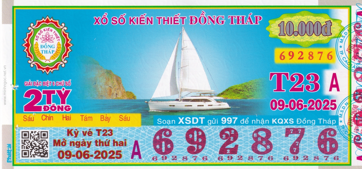 Mẫu vé kiểm tra khi đổi số trúng Đồng Tháp Ngày: 09/06/2025