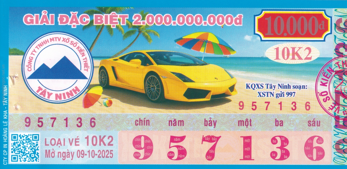 Mẫu vé kiểm tra khi đổi số trúng Tây Ninh Ngày: 09/10/2025