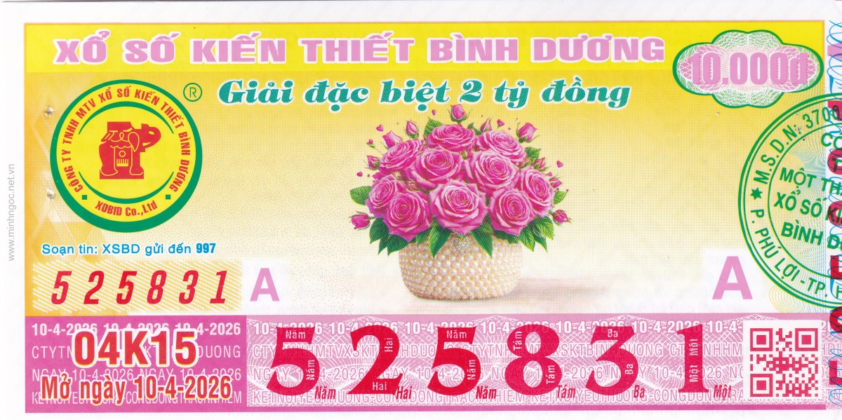 Mẫu vé kiểm tra khi đổi số trúng Bình Dương Ngày: 10/04/2026