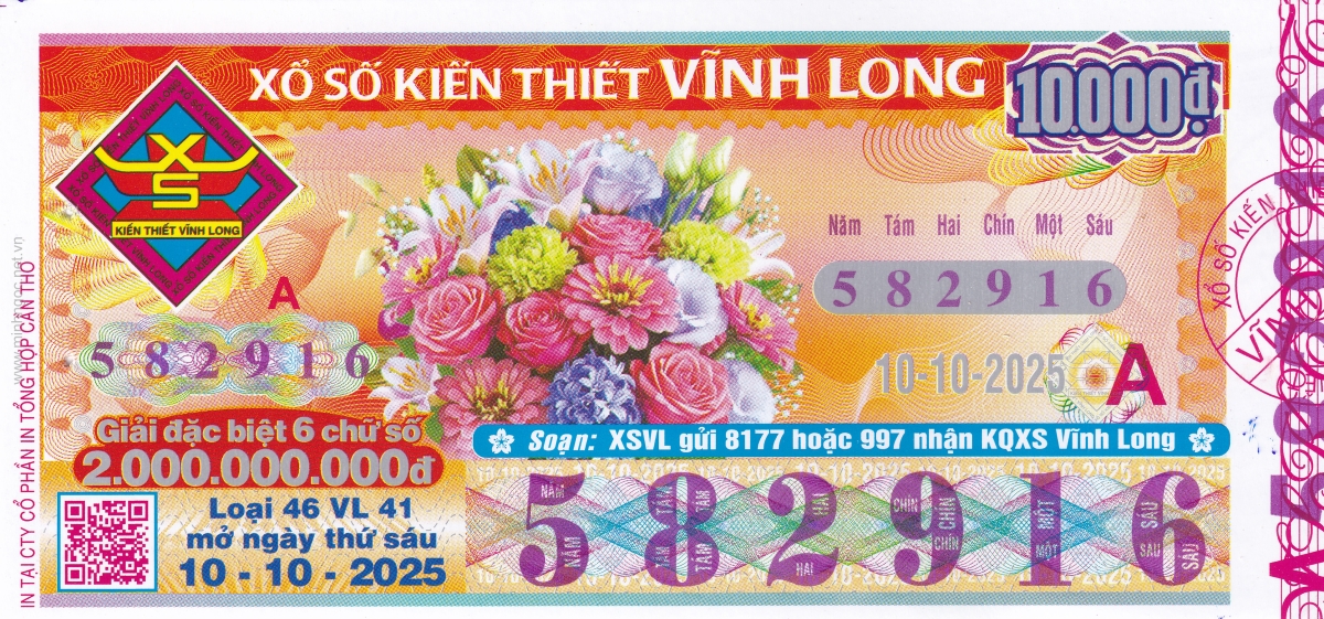 Mẫu vé kiểm tra khi đổi số trúng Vĩnh Long Ngày: 10/10/2025