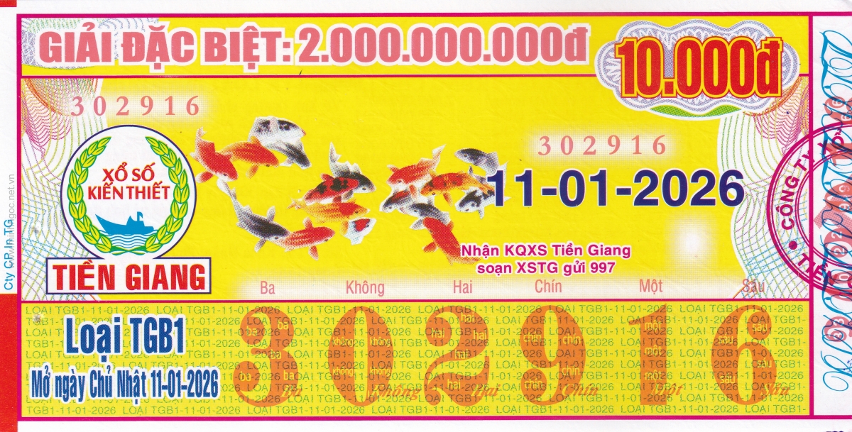 Mẫu vé kiểm tra khi đổi số trúng Tiền Giang Ngày: 11/01/2026