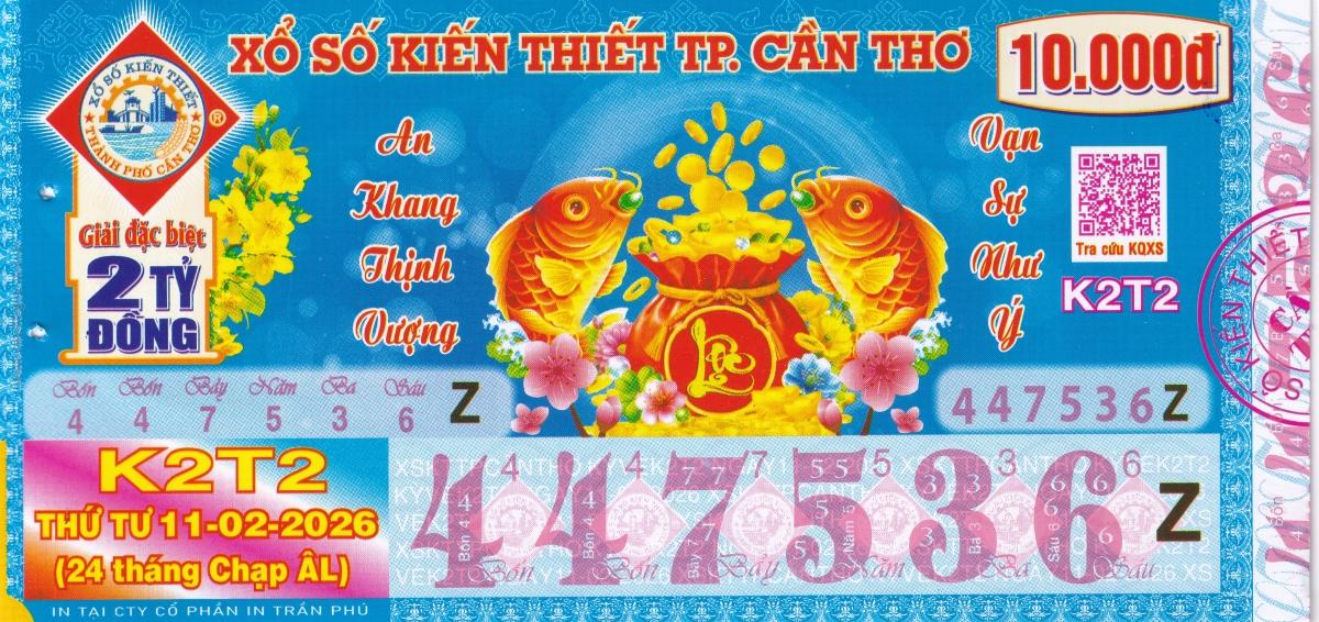 Mẫu vé kiểm tra khi đổi số trúng Cần Thơ Ngày: 11/02/2026