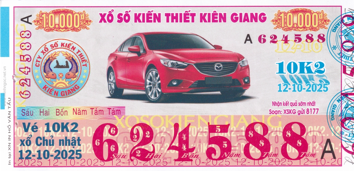 Mẫu vé kiểm tra khi đổi số trúng Kiên Giang Ngày: 12/10/2025
