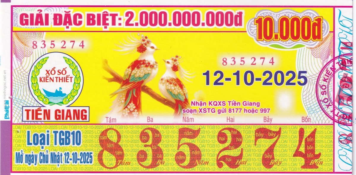 Mẫu vé kiểm tra khi đổi số trúng Tiền Giang Ngày: 12/10/2025