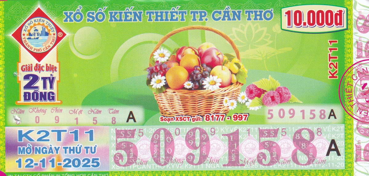 Mẫu vé kiểm tra khi đổi số trúng Cần Thơ Ngày: 12/11/2025
