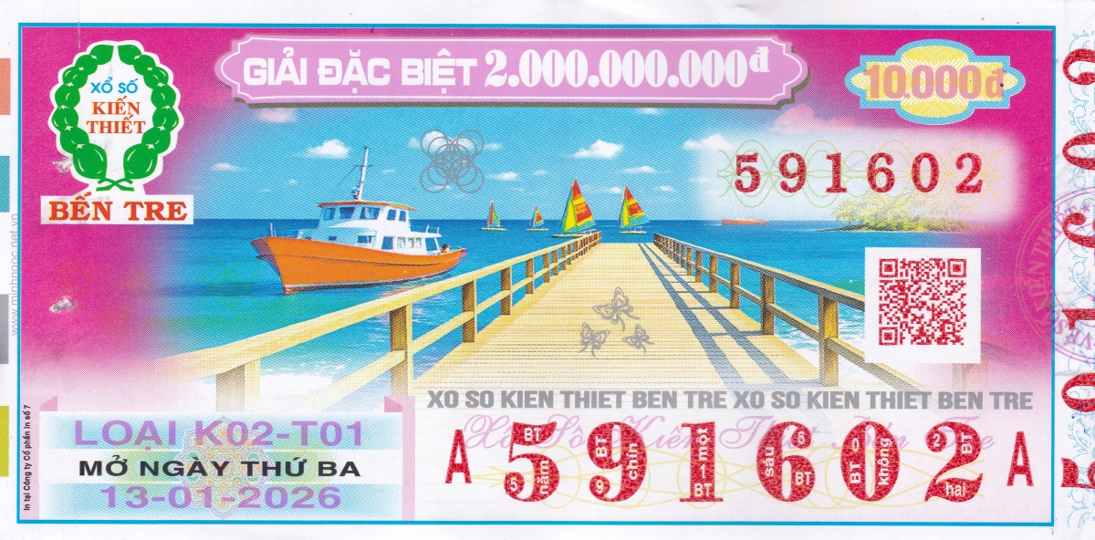 Mẫu vé kiểm tra khi đổi số trúng Bến Tre Ngày: 13/01/2026