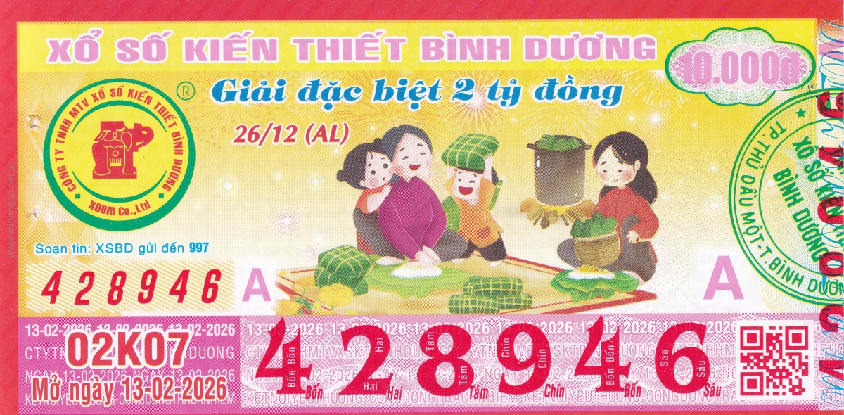 Mẫu vé kiểm tra khi đổi số trúng Bình Dương Ngày: 13/02/2026