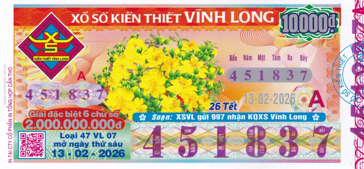 Mẫu vé kiểm tra khi đổi số trúng Vĩnh Long Ngày: 13/02/2026