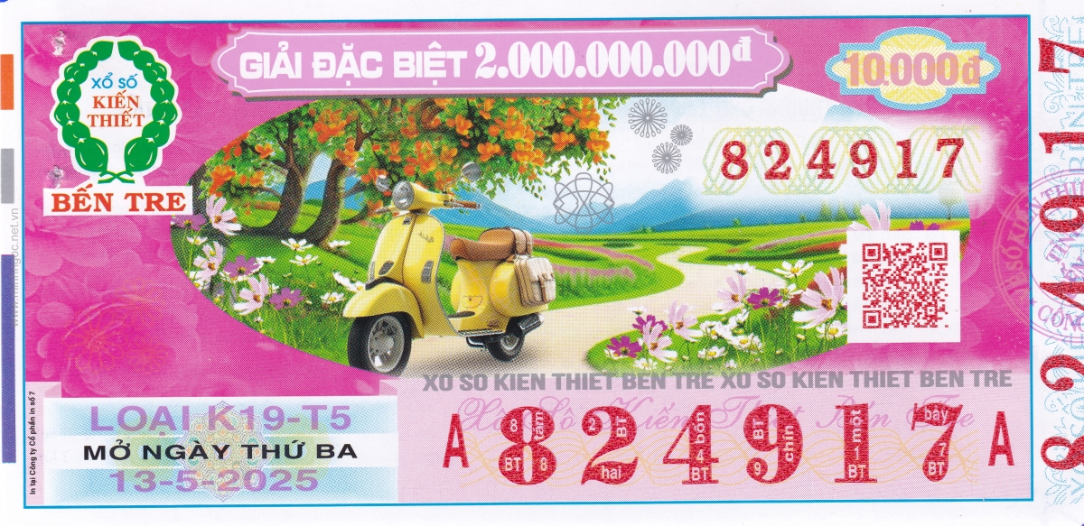 Mẫu vé kiểm tra khi đổi số trúng Bến Tre Ngày: 13/05/2025