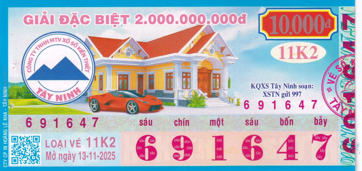 Mẫu vé kiểm tra khi đổi số trúng Tây Ninh Ngày: 13/11/2025
