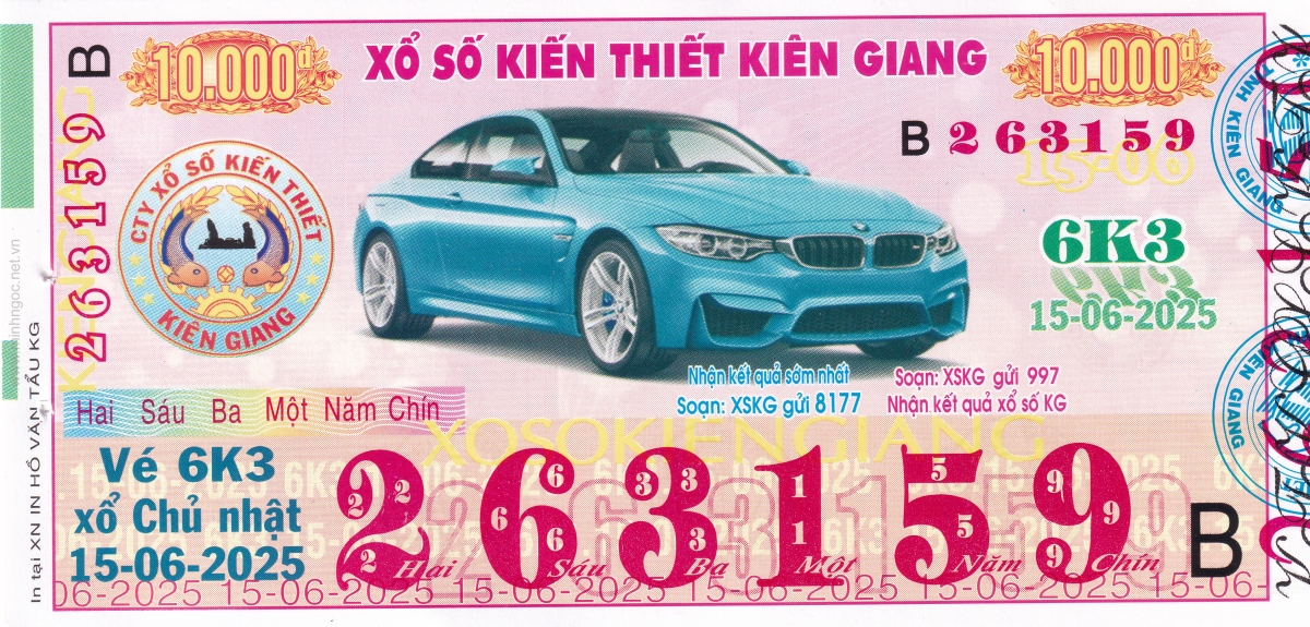 Mẫu vé kiểm tra khi đổi số trúng Kiên Giang Ngày: 15/06/2025