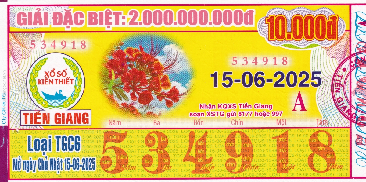 Mẫu vé kiểm tra khi đổi số trúng Tiền Giang Ngày: 15/06/2025