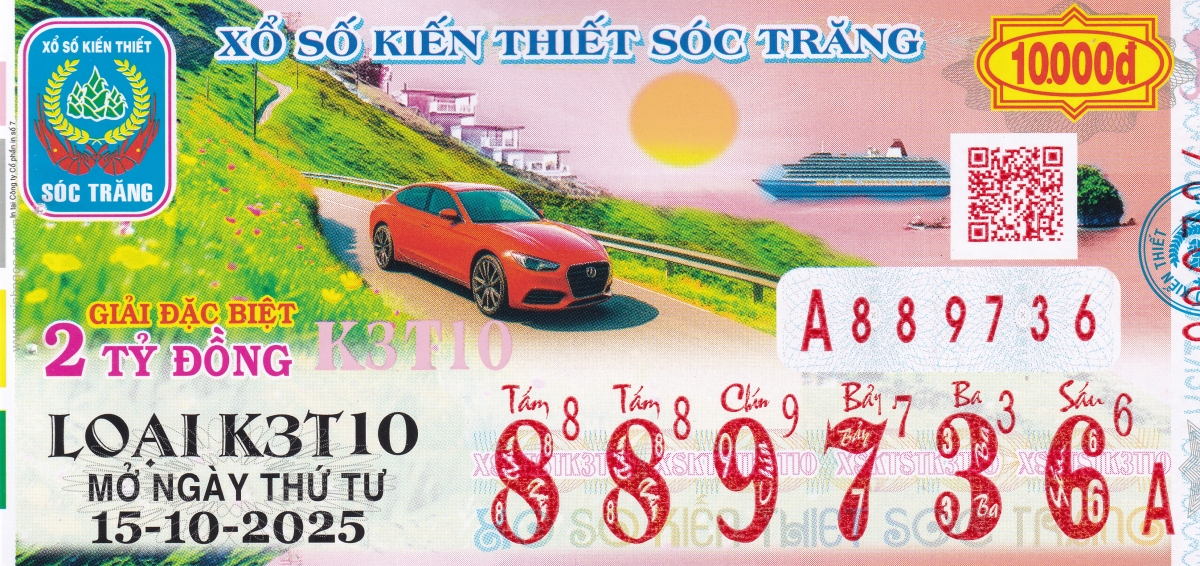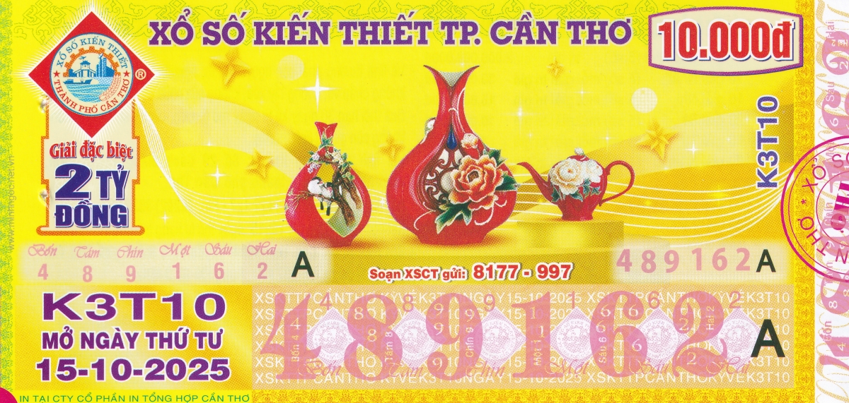 Mẫu vé kiểm tra khi đổi số trúng Cần Thơ Ngày: 15/10/2025