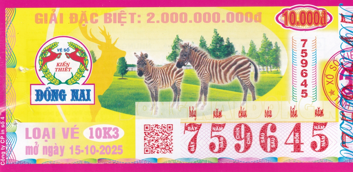 Mẫu vé kiểm tra khi đổi số trúng Đồng Nai Ngày: 15/10/2025