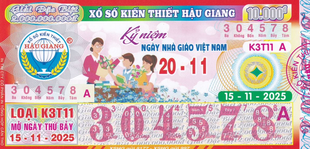 Mẫu vé kiểm tra khi đổi số trúng Hậu Giang Ngày: 15/11/2025