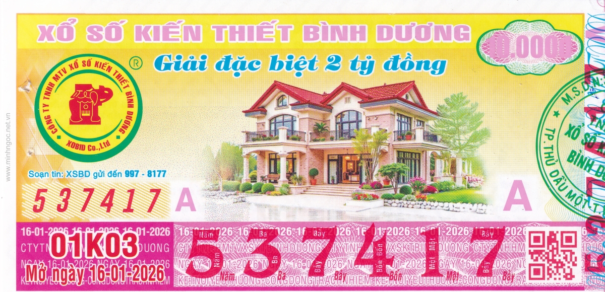 Mẫu vé kiểm tra khi đổi số trúng Bình Dương Ngày: 16/01/2026