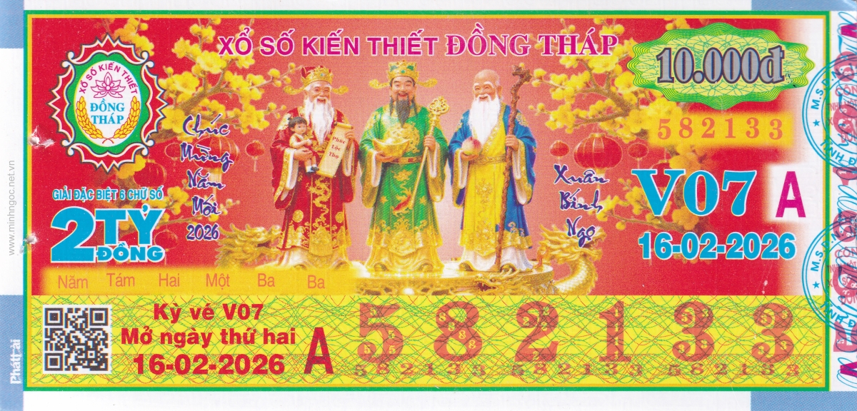 Mẫu vé kiểm tra khi đổi số trúng Đồng Tháp Ngày: 16/02/2026