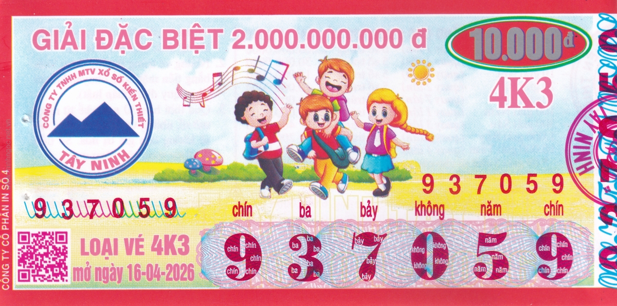 Mẫu vé kiểm tra khi đổi số trúng Tây Ninh Ngày: 16/04/2026