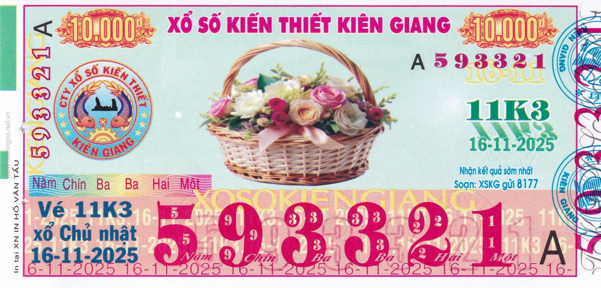 Mẫu vé kiểm tra khi đổi số trúng Kiên Giang Ngày: 16/11/2025