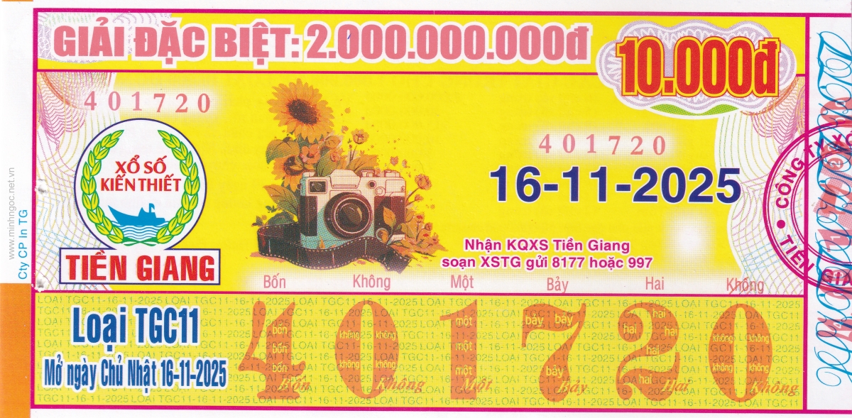 Mẫu vé kiểm tra khi đổi số trúng Tiền Giang Ngày: 16/11/2025