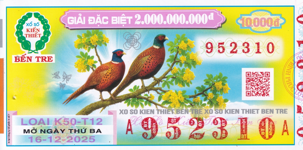Mẫu vé kiểm tra khi đổi số trúng Bến Tre Ngày: 16/12/2025