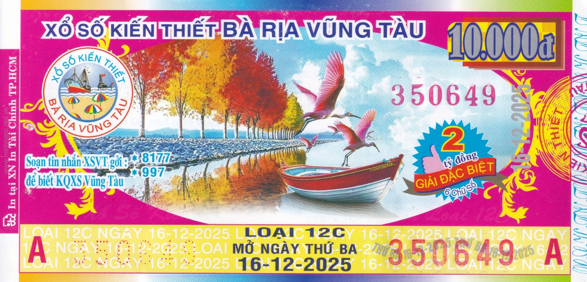 Mẫu vé kiểm tra khi đổi số trúng Vũng Tàu Ngày: 16/12/2025