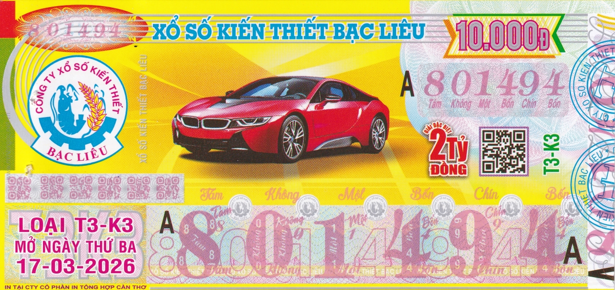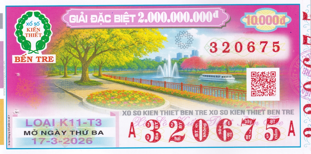 Mẫu vé kiểm tra khi đổi số trúng Bến Tre Ngày: 17/03/2026