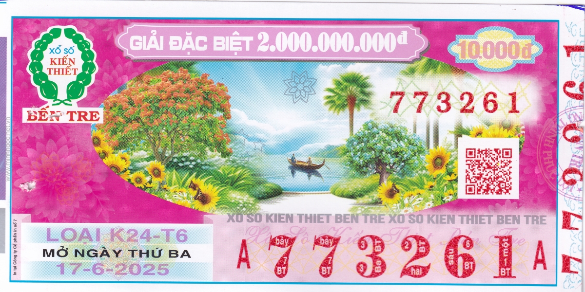 Mẫu vé kiểm tra khi đổi số trúng Bến Tre Ngày: 17/06/2025